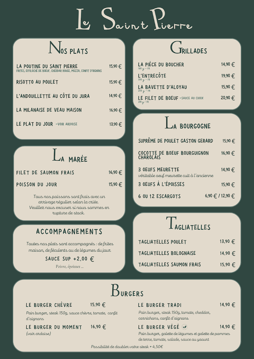Welcome to Le Saint Pierre, a charming brasserie nestled in the heart of Chalon-sur-Saône, France. This delightful eatery invites you to savor a menu that reflects the essence of authentic French cuisine. From the rich duck maigret to the comforting salade de chèvre chaud, each dish is crafted with care and local ingredients, ensuring a taste of Burgundy in every bite.